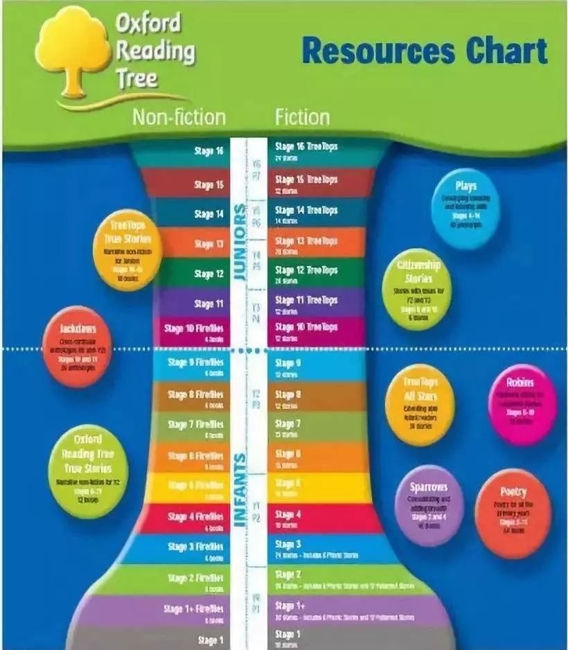 下面这颗大树,整个树干和彩色圆圈都属于牛津树系列,树干只显示1-16等级: